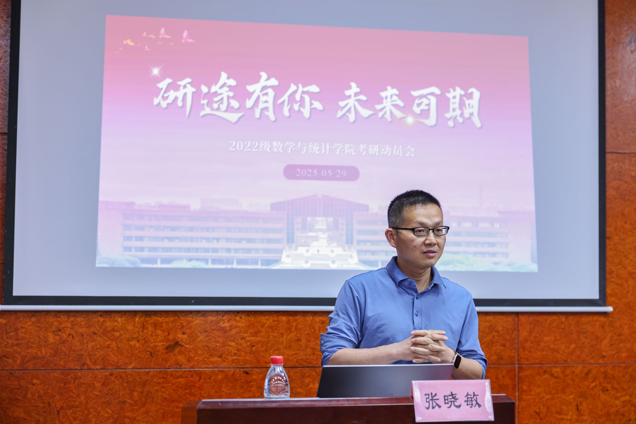 为加强学风建设,提高学生考研热情,529日,数学与国产自拍 组织召开2022级年级大会暨考研动员大会。国产自拍屈长征教授、院党委副书记姜萍、精算中心主任王伟、统计与金融工程系系主任张晓敏、专业教师曹陈辰、于亚璇、院团委书记孔家辉出席会议,2022级全体本科生参加了本次大会。