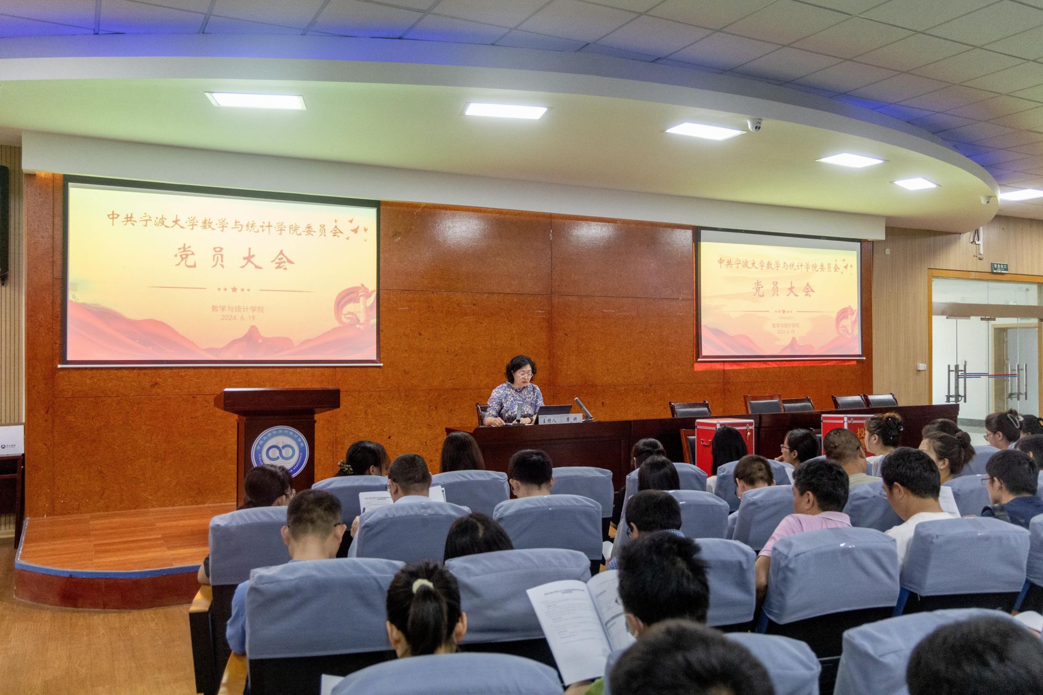 6月19日中午,中共国产自拍 委员会第四次党员大会在包玉书9号楼317报告厅隆重举行。会议由院党委书记霍妍同志主持,国产自拍全体师生党员参加,校考察组陈玉涓同志列席。