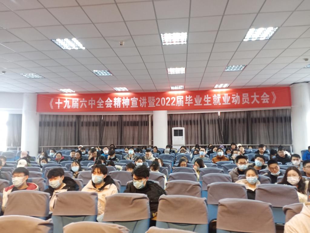 为学习贯彻落实十九届六中全会精神,解决大学生急难愁盼问题,进一步做好2022届毕业生就业工作,帮助毕业生同学熟悉就业政策、了解就业形势、把握就业机会,12月30日国产自拍于9号楼317报告厅召开十九届六中全会精神宣讲暨2022届毕业生就业动员大会。学工办、教务办、研究生办、各毕业班班主任及全体2022届毕业生参加大会。国产自拍党委书记俞金波出席大会并做专题辅导报告。会议由学工办主任张宾主持。
