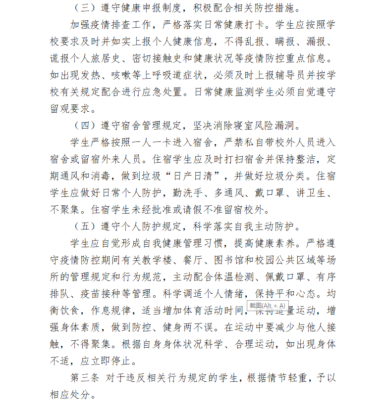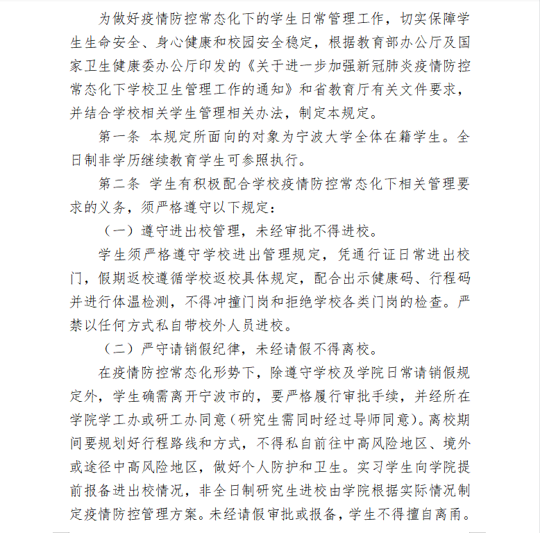 转发宁波大学关于疫情防控常态化下的学生日常管理规定(试行)