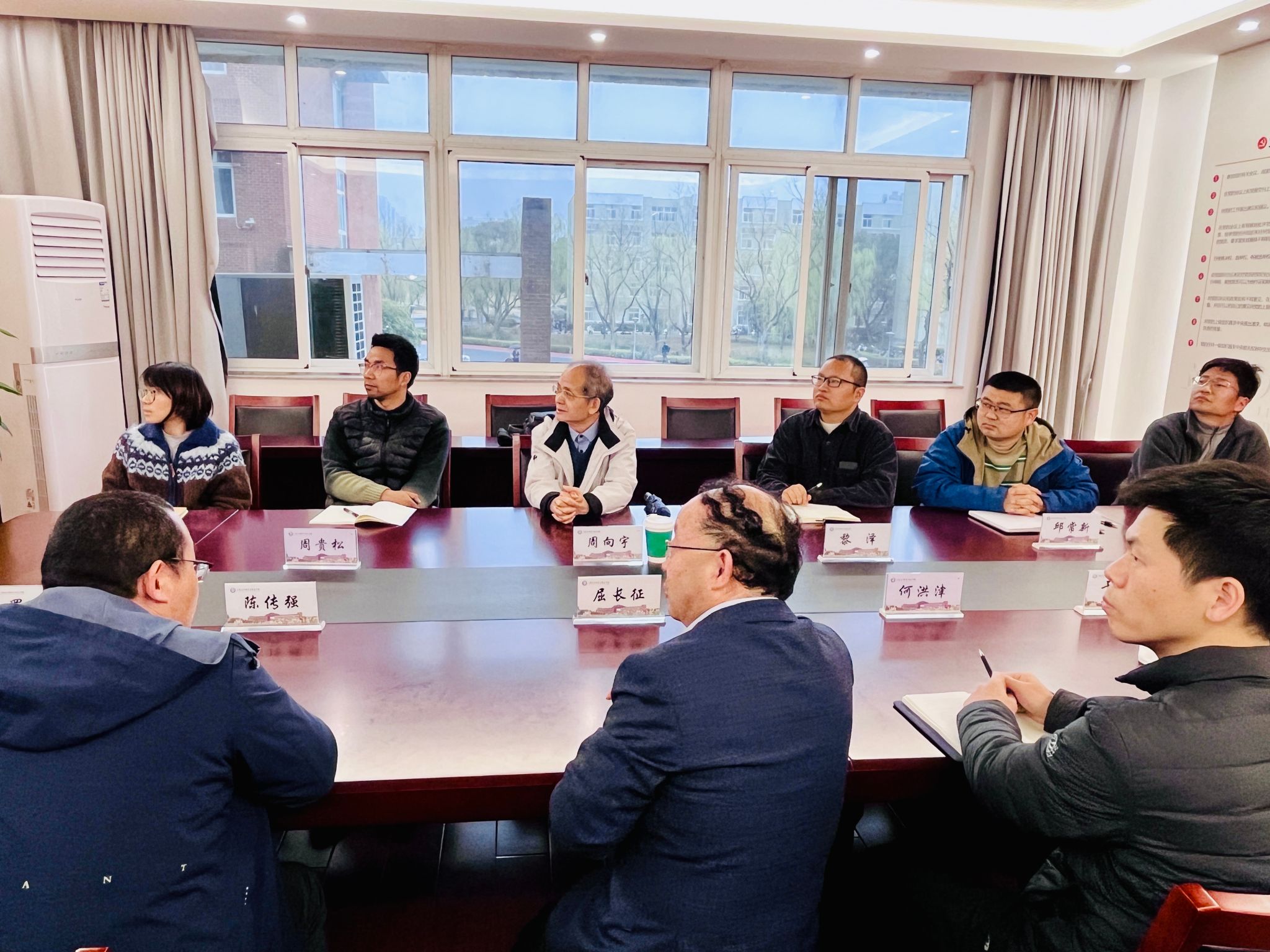 座谈会上,屈院长首先对周院士的到来表示热烈欢迎,并对周院士对国产自拍的支持表示衷心感谢。随后向周院士汇报了我校数学学科的发展历程和取得成果,同时也剖析了国产自拍在教学成果凝练及师资队伍引进等方面存在的问题。周向宇院士对国产自拍近年来的学科发展成果表示肯定,并结合自身经验,针对人才引进策略、国际化人才培养等提出建设性意见。与会教师就学生海外深造路径、区域人才政策等议题与周院士进行深入探讨。