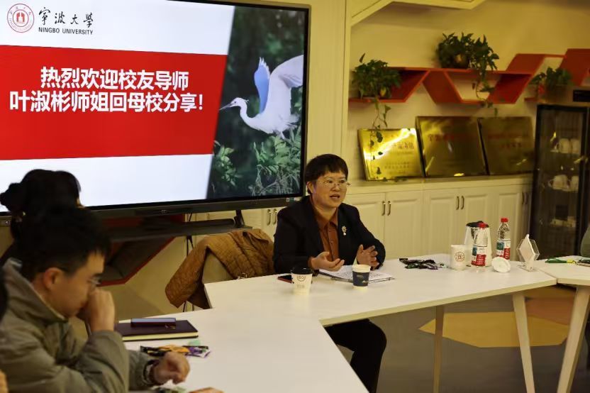 叶师姐于1993年毕业于宁波大学应用数学系,身为高级经济师的她,始终心系母校,关注学子成长。分享伊始,她以亲切自如的讲述拉近了与在场同学的距离,并围绕会前征集到的十余个问题,展开了细致而深入的解答。