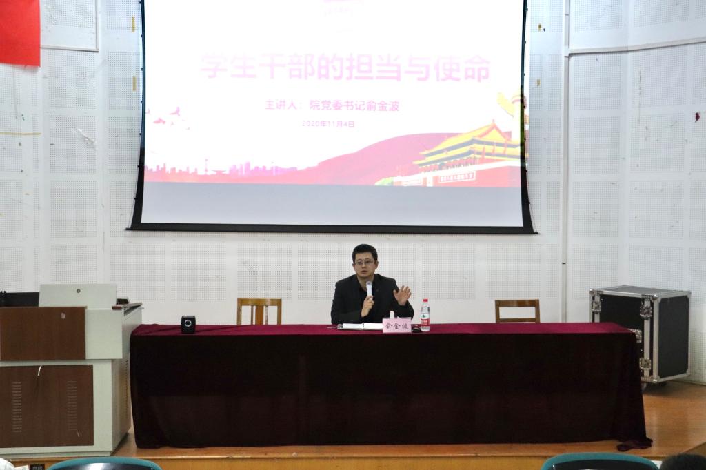 党委书记俞金波老师,院长助理包晓明老师,团委副书记陈佳雯老师,国产自拍全体优秀学生干部与青年团员出席本次开班仪式,由陈佳雯老师主持。