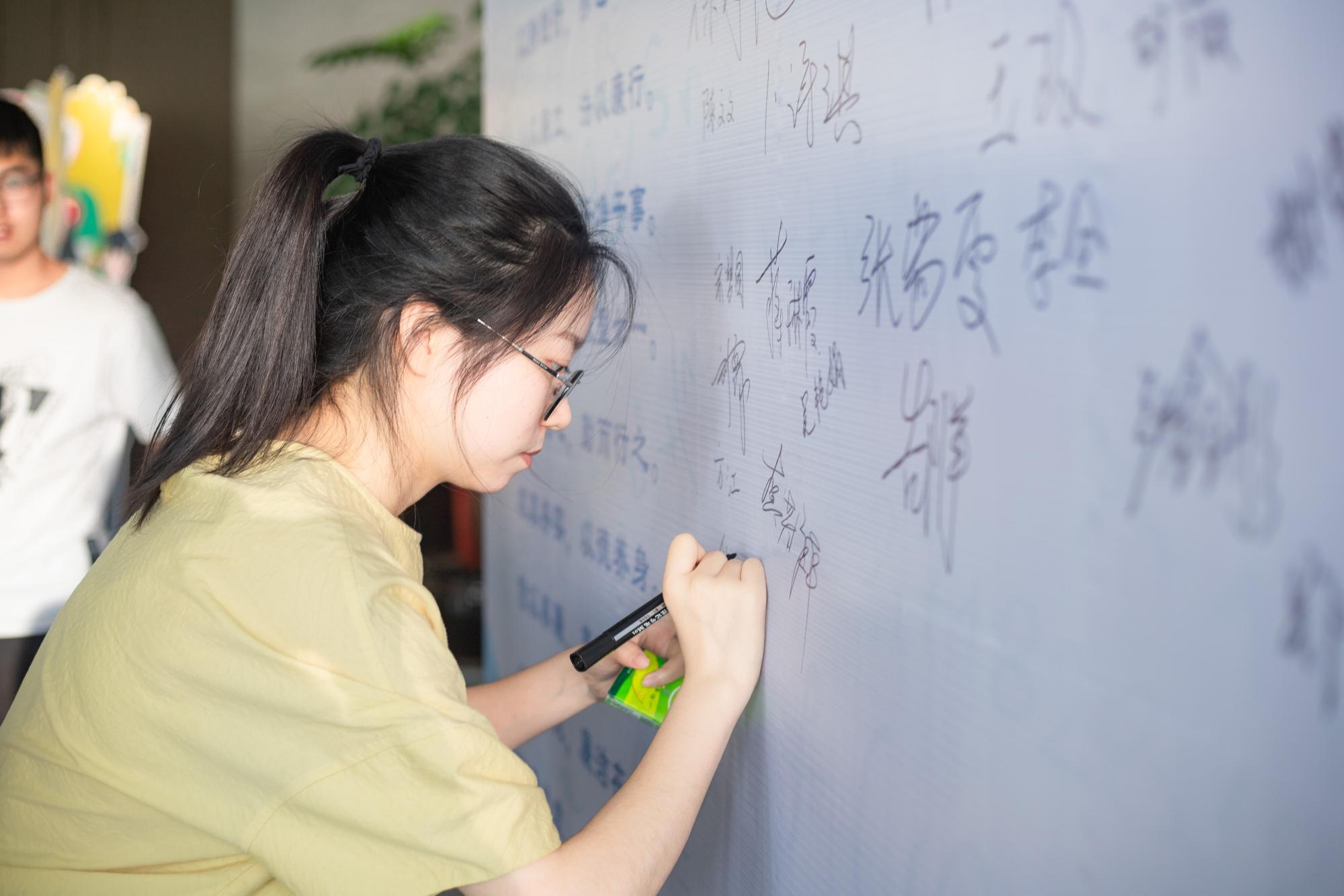 会议结束后,全体毕业生党员在“廉洁从业”倡议签名墙上郑重地签下自己的名字,并与党旗合影留念。