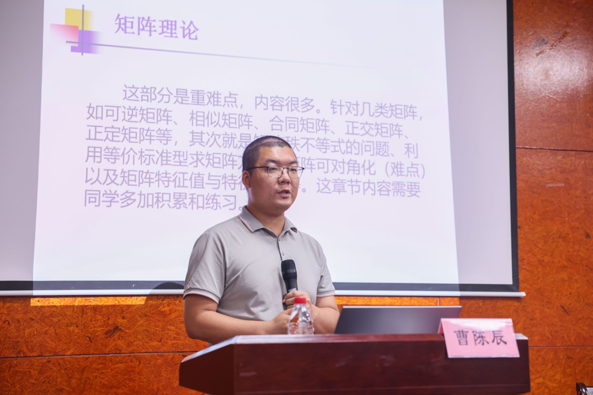 曹陈辰老师针对高等代数与线性代数的备考进行专项指导深度解析了数学分析及专业考试中高等代数、线性代数的命题规律,并提出备考规划建议:首轮系统梳理基础知识,次轮强化模块专题训练,末轮模拟查漏补缺。王伟老师为考研学生提供金融与统计专硕择校及备考策略。他建议考生根据职业规划和经济条件选择院校,并提出分阶段复习计划,特别提醒跨考生注意专业课广度和时事热点,建议通过历年真题把握命题规律。