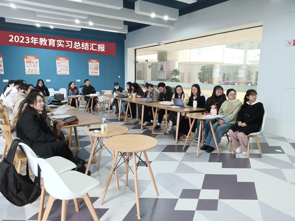 座谈会上,参加教育实习的每位同学以小组为单位,通过ppt、视频等多种形式展现了丰富而且有意义的教育实习生活,同时回顾总结了实习过程中的收获。随后,与会老师高度评价了同学们的实习工作,引导同学们思考总结汇报座谈会与实习动员大会时不同的心境,体会教育实习这三个月以来的成长。