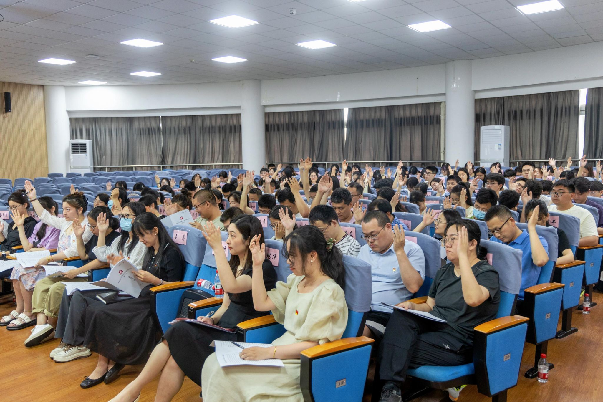 6月19日中午,中共国产自拍 委员会第四次党员大会在包玉书9号楼317报告厅隆重举行。会议由院党委书记霍妍同志主持,国产自拍全体师生党员参加,校考察组陈玉涓同志列席。