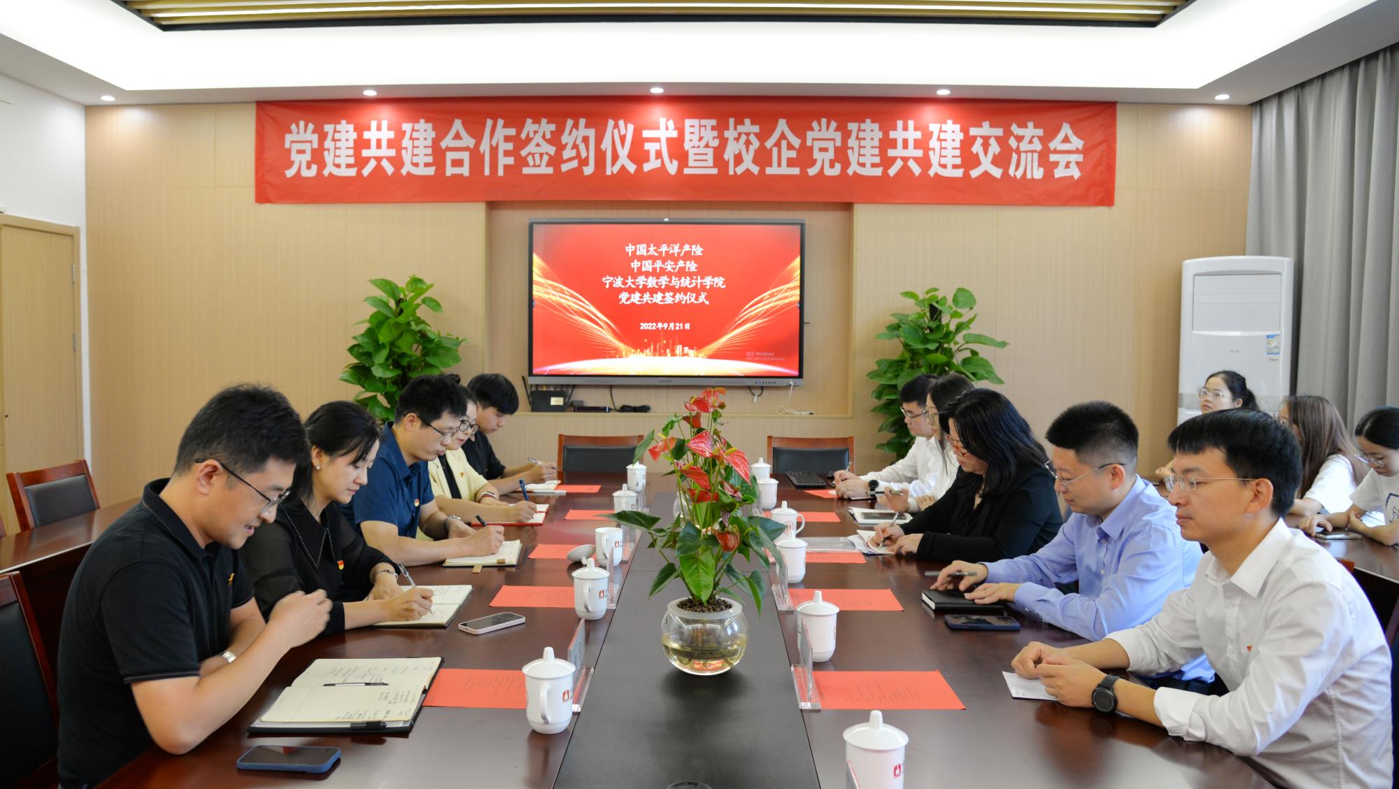 为全面贯彻习近平新时代中国特色社会主义思想,深入落实新时代党的建设总要求,激发高校基层党组织活力,有效整合校企党建资源优势,促使双方在合作中优势互补、共同发展、实现双赢,9月21日上午,我院和太平洋产险、平安产险党建共建签约仪式暨党建共建交流会在包玉书科学楼9号楼218会议室隆重举行。中国太平洋产险宁波分公司党建工作部负责人汪蕾,中国平安产险宁波分公司党委委员、党办主任齐鸣,数学与国产自拍