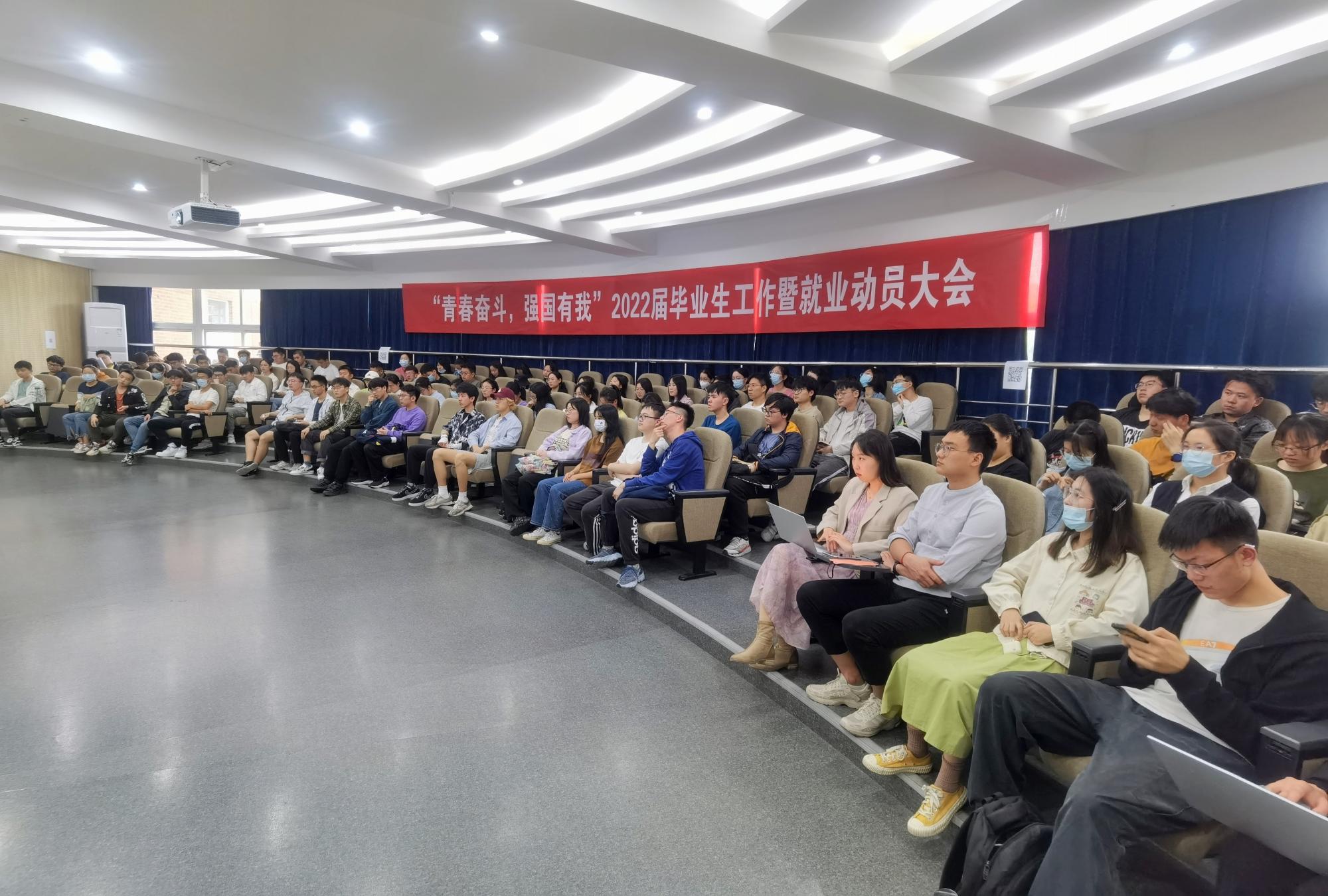 为全面推进落实我院毕业生工作,为毕业生提供全面的就业服务,5月20日下午,我院在113报告厅开展“青春奋斗、强国有我”—2022届毕业生工作暨就业动员大会,国产自拍党委书记俞金波、党委副书记姜萍、学工办主任张宾、团委书记陈佳雯、特邀杰出校友企业家厉刚出席本次会议,全体2022届毕业生共同参会。