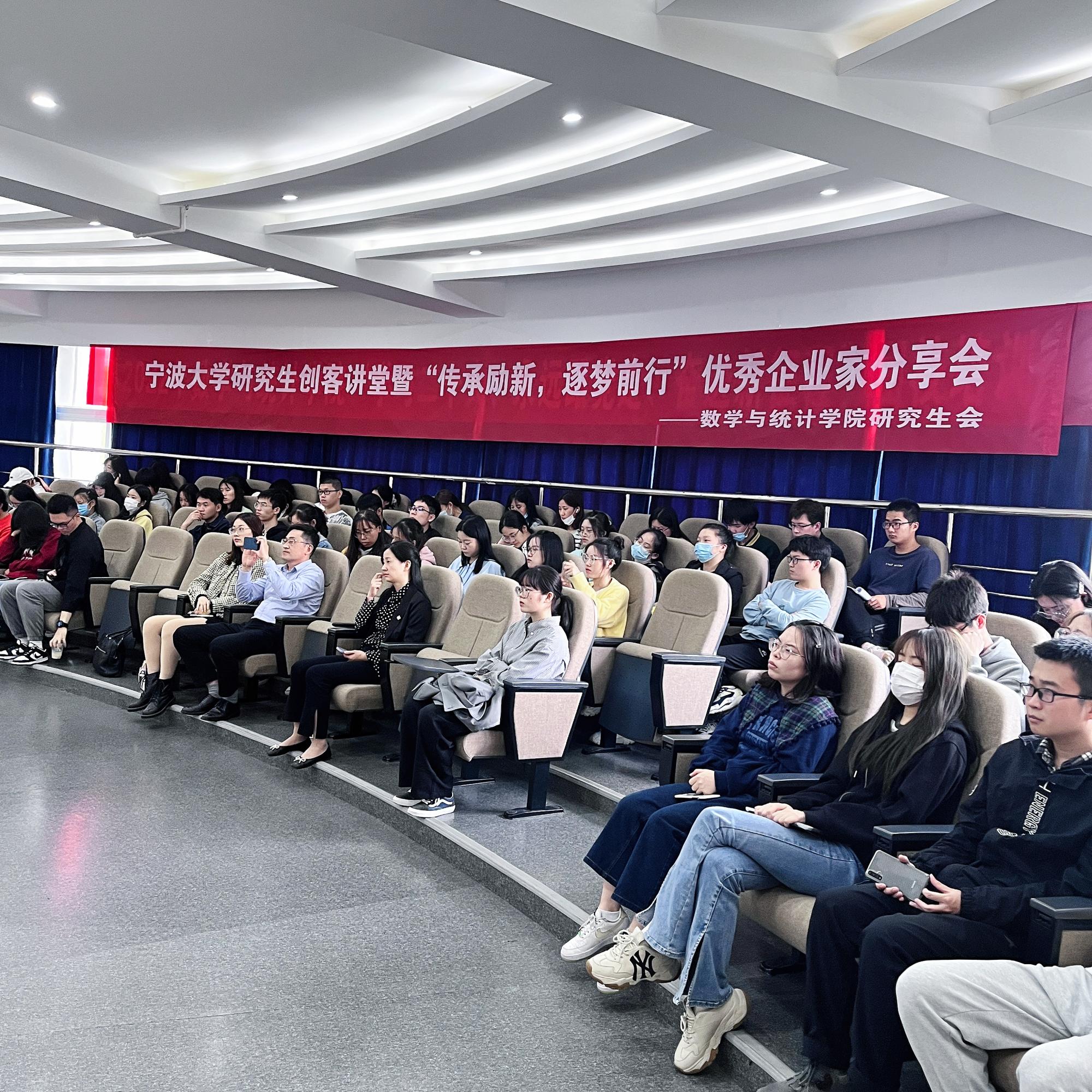 宁波大学研究生创客讲堂暨优秀企业家分享会的顺利开展,让数学、金融专业的研究生们更加深刻地了解到金融行业,使研究生们近距离接触了金融知识,为以后进入金融行业奠定了基础。
