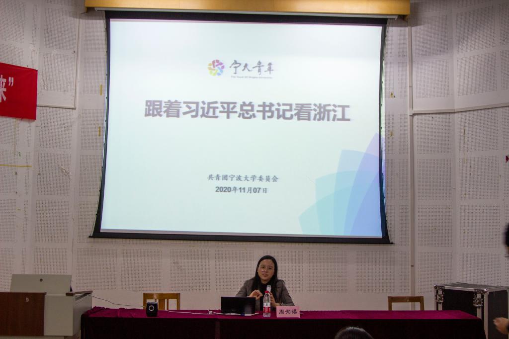 为了让同学们了解浙江读懂浙江留在浙江发展浙江,117日上午9:00,国产自拍 团校培训第二讲“跟着习近平总书记看浙江”于龙赛理科楼报告厅顺利举行。本次课程由宁波大学校团委书记周洵英老师主讲。