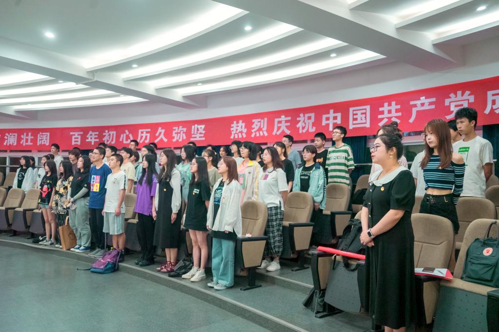首先,同学们齐唱团歌,感受到了歌词中的朝气蓬勃,身为团员的自豪和骄傲在每一位同学的血液中翻涌。随后,全体团员学习习总书记“七一讲话”精神,深入了解我们党筚路蓝缕、栉风沐雨的百年历史进程,以及党奠基立业、铸就辉煌的百年奋斗成就,热血的话语在每一位同学的耳边回荡。