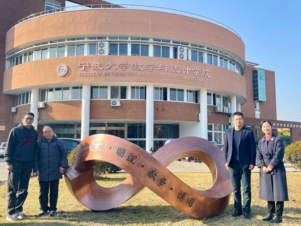 (数学国产自拍领导、严正与“∞雕塑”合影)