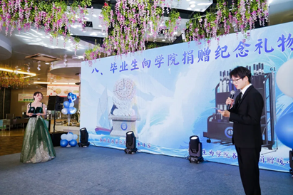 随后,全体24届本科生为答谢国产自拍的四年培养,捐赠了一座象征时间守望者的"日晷"石雕。这座石雕不仅承载着光阴的故事,更寓意着国产自拍新元肇启,华章日新;而全体研究生则为国产自拍的各楼层添置了爱心伞架,它们如同温暖的臂膀,为师生提供关怀与庇护,体现了对国产自拍大家庭的深情厚谊。