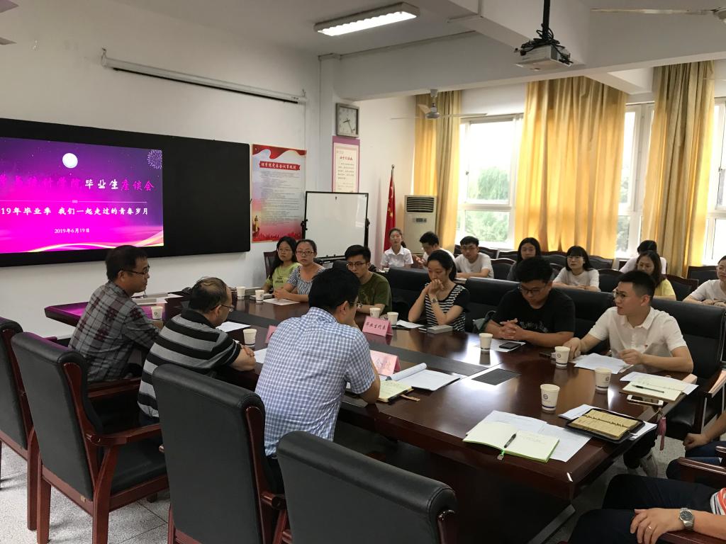 2019届优秀毕业生座谈会顺利举行。数学国产自拍特聘院长屈长征、党委书记俞金波、副院长曹炜、学工办、教务办、研工办相关老师及12位优秀毕业生代表参加了会议,会议由学工办负责人冯程老师主持。