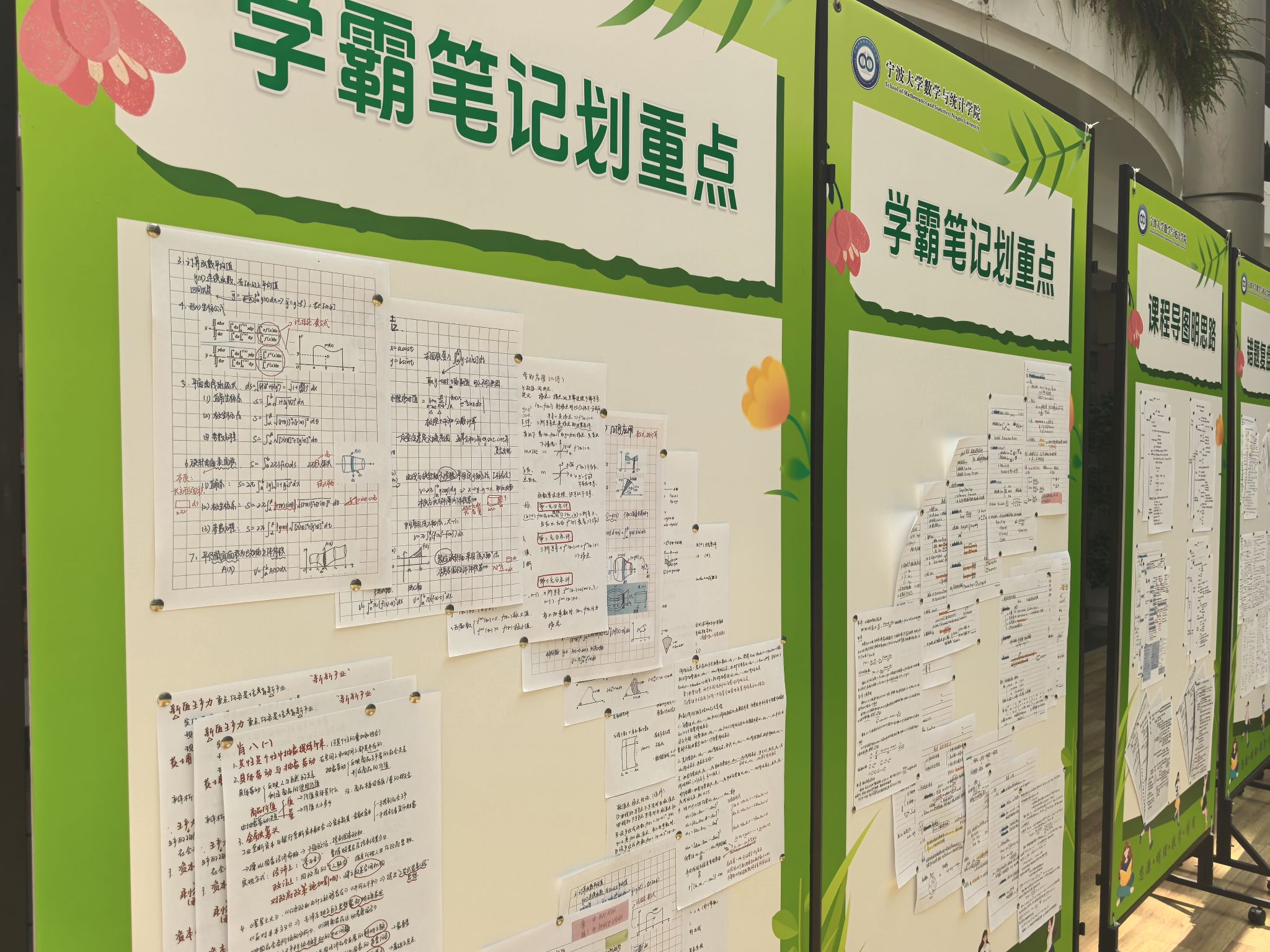 在国产自拍大厅的展陈区域内,数份打印版复习资料分类有序粘贴在展板上,内容覆盖数学分析、高等代数、概率论与数理统计等核心科目。这些资料中,既有学长学姐们对知识点的系统梳理与真题解析,也包含易错题型标注及解题思路批注,部分草稿纸上还留存着反复推导的公式与修正痕迹,真实还原了学长学姐们备考过程中的思维轨迹。例如,其中一份高等代数笔记通过不同颜色标注定理证明的关键步骤,概率论习题集页眉处详细记录着公式推导的延伸思考,为学弟学妹们提供了可参照的学习范式。