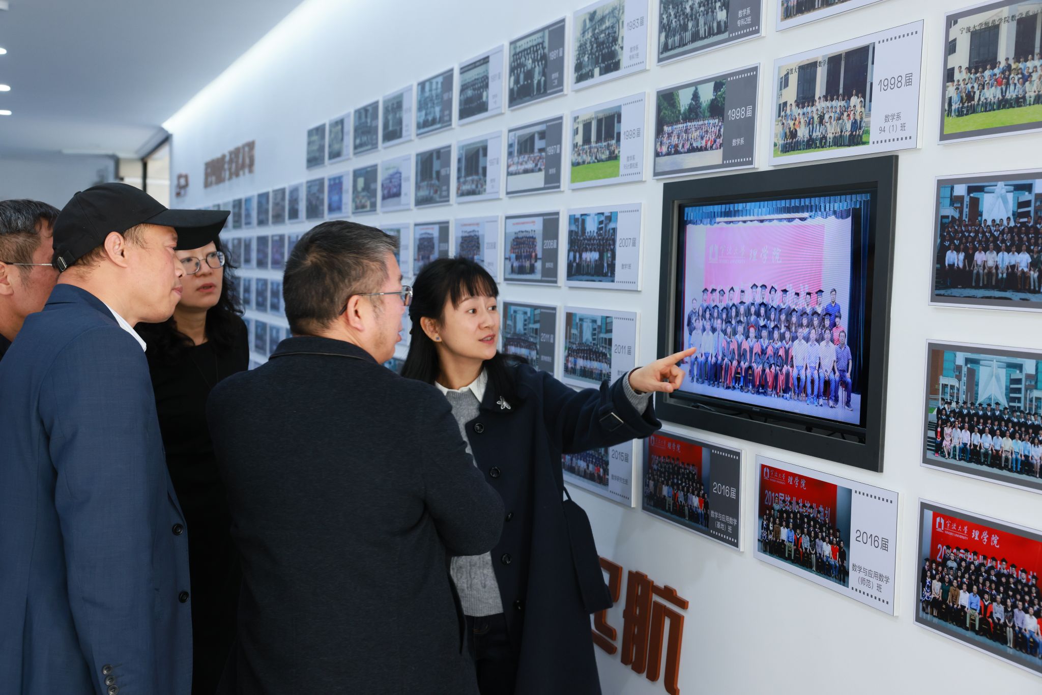 。学院为此次校友返校活动做了精心准备,学院领导、当年授课的教师代表热情迎接。在学院老师的陪同下,校友们参观了学院文化长廊、校友墙以及学院大厅的科普展等。看到学院在学科建设、人才培养、科学研究等方面取得的累累硕果,校友们深感震撼与鼓舞。他们为母院今日的雄厚实力与崭新面貌感到由衷骄傲,并不时就感兴趣的话题与在场老师进行交流。