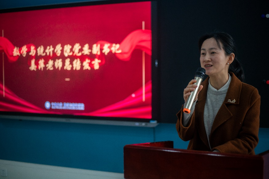 最后,数学学院党委副书记姜萍老师对学生干部的努力和付出表达了感谢和认可,并希望各位学生干部继续秉持为同学服务初心,注重自身素质提升,创新工作方法,把握同学需求,当好学校与学生的重要桥梁和纽带。