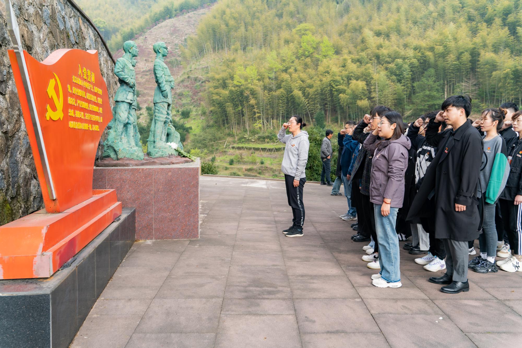 在溪口镇壶潭村,师生党员们参观壶谭革命烈士纪念馆,深入了解革命先烈们的英勇抗争事迹,重温入党誓词再次坚定政治理想信念。并前往烈士墓园,全体师生代表手持黄白菊花,低头静立,向为革命事业前赴后继、英勇献身的革命烈士默哀。在祭扫仪式上,国产自拍党委书记霍妍老师代表全体党员向三位烈士致悼词表达崇高的敬意。同时,也激励师生要继承并践行英雄精神,汲取前行力量,让青春在全面建设社会主义现代化的火热实践中绽放绚丽之花,从而无愧于时代、无愧于先烈。