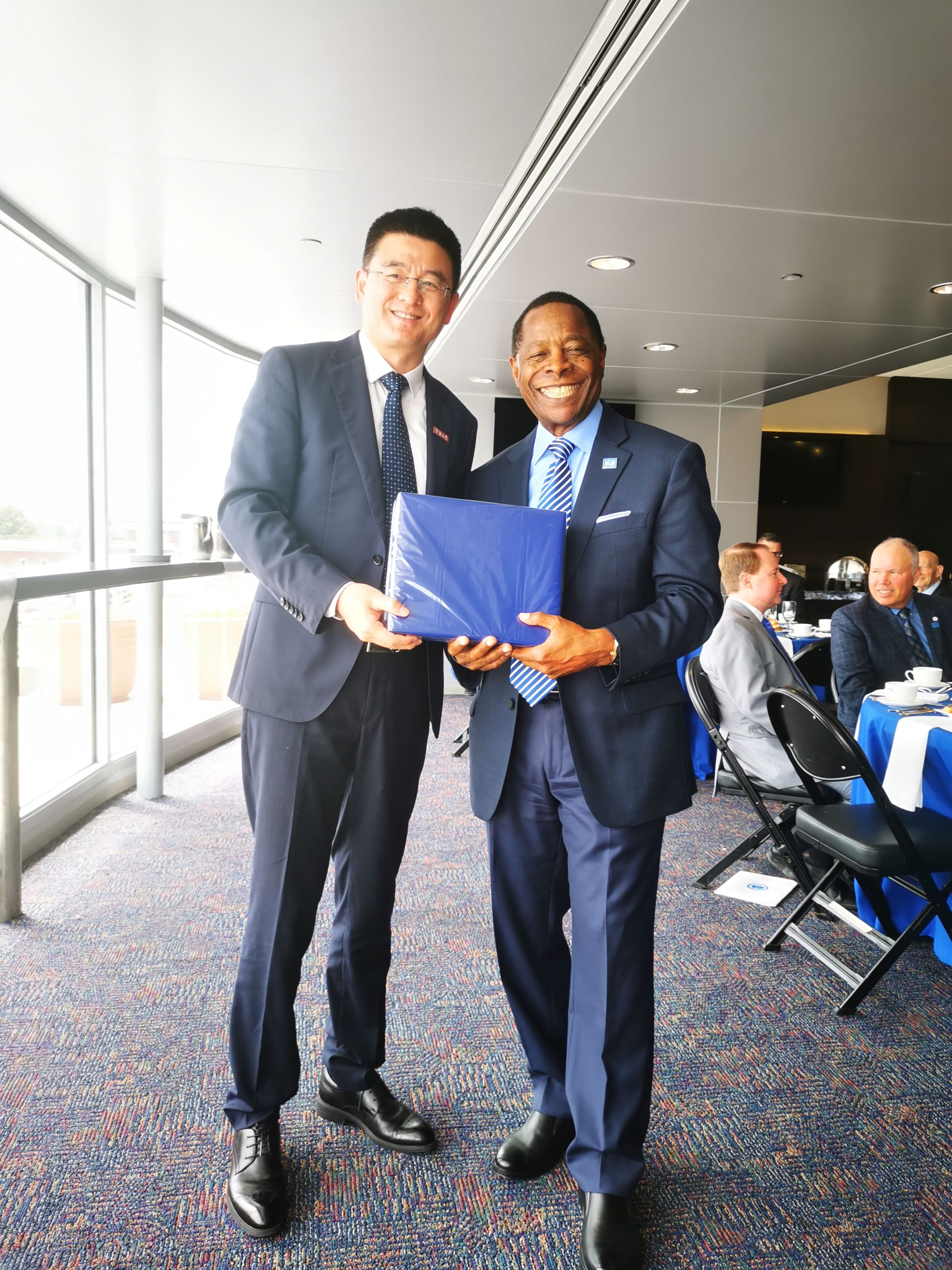 5月10日上午,周青一行出席了宁大2025届中美精算项目学生的毕业典礼。当天中午,中田纳西州立大学校长Sidney Mcphee邀请代表团一行共进午餐,期间,Sidney Mcphee校长充分肯定了两校合作的办学成果,对赴美留学的宁波大学精算专业学生给予了高度的评价,他期望合作能够进一步深化。周青受邀发表简短致辞,他向大家介绍了宁波以及宁波大学,他盛情邀请中田纳西州立大学的同仁到宁波以及宁波大学参观访问。