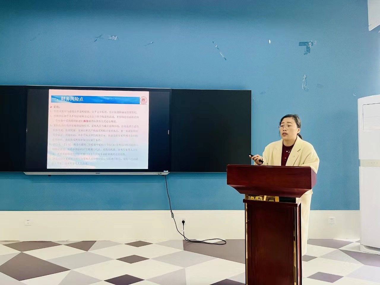 首先,财务处副处长黄晓静以财务报销中发现的常见问题作为切入点,结合案例向大家详细讲述了在采购和科研经费使用过程中的廉政风险点,同时就票据粘贴要求、发票种类介绍和报销政策介绍等方面的内容进行了深入的讲解。采购管理科科长丁瑜清则以“采购业务知识讲解”为主题,对采购的组织形式、采购方式、采购工作流程以及部分服务和货物进行框架协议采购的最新政策进行了详细的政策解读。